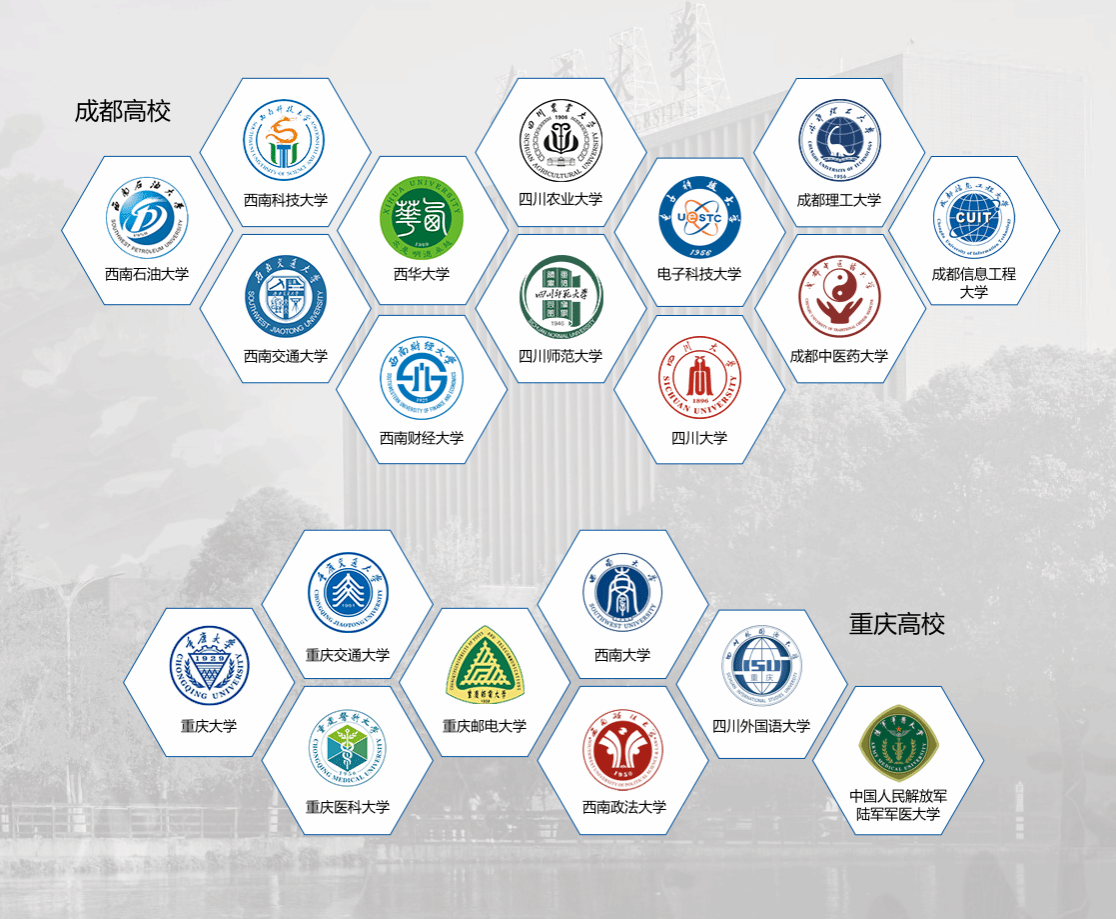 2020年5月,為推動(dòng)成渝地區(qū)雙城經(jīng)濟(jì)圈建設(shè),支撐“具有全國影響力的重要經(jīng)濟(jì)中心、科技創(chuàng)新中心、改革開放新高地、高品質(zhì)生活宜居地”戰(zhàn)略目標(biāo)實(shí)現(xiàn),促進(jìn)兩地高校相互交流合作,推動(dòng)區(qū)域高等教育高質(zhì)量發(fā)展,成渝地區(qū)雙城經(jīng)濟(jì)圈內(nèi)的部分高等學(xué)校發(fā)起成立“成渝地區(qū)雙城經(jīng)濟(jì)圈高校聯(lián)盟”。
